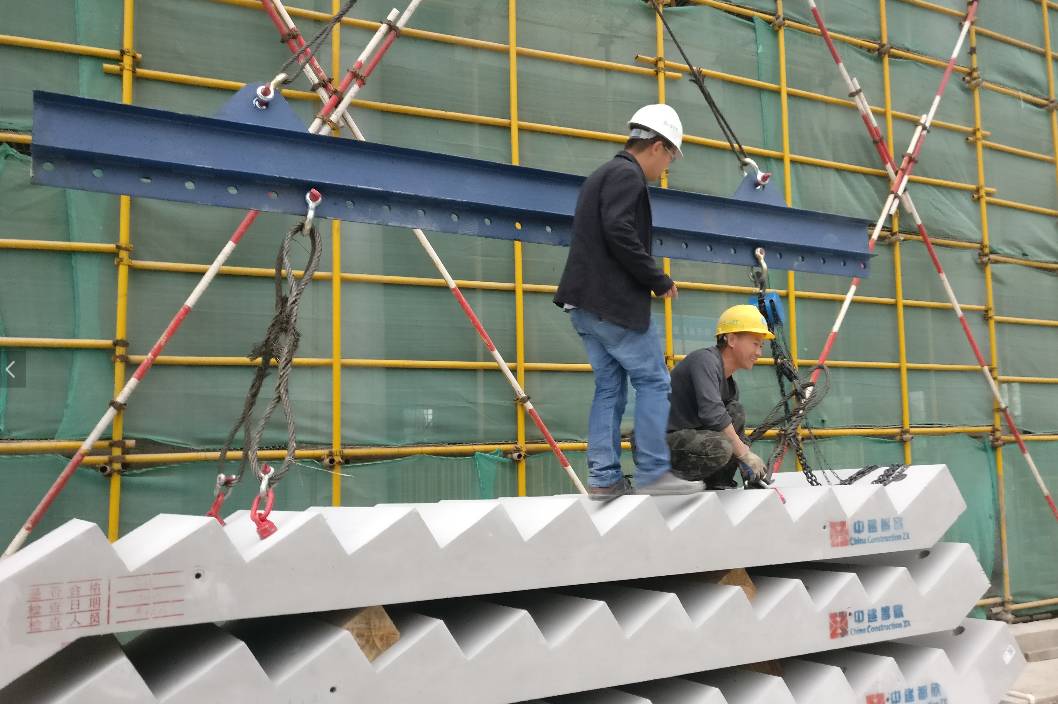 2017年4月11日,中建七局南方公司瑞達國際金融中心工程在充分做好裝配式整體樓梯吊裝前期準備工作的基礎(chǔ)上,對南塔樓10層-11層的預制裝配式整體樓梯進行了首次吊裝。廈門市建設局有關(guān)專家到現(xiàn)場進行了觀摩與指導,對吊裝的整體裝配式樓梯進行了質(zhì)量檢查并采集了有關(guān)數(shù)據(jù),對推廣應用此項新技術(shù)給予了高度的評價。