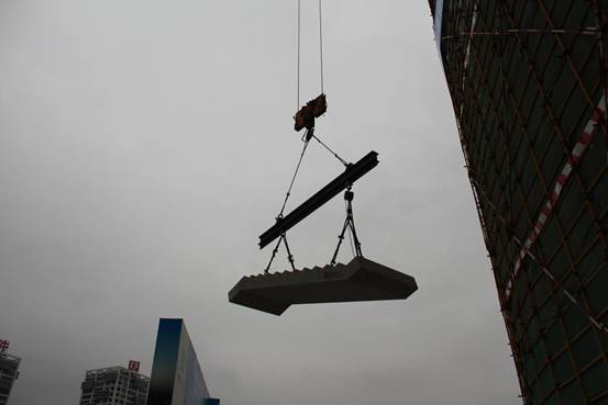 中建七局南方公司瑞達國際金融中心工程預制樓梯首吊成功