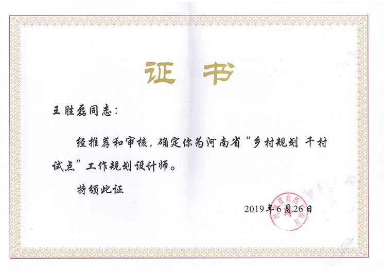 王勝磊下鄉(xiāng)規(guī)劃師證書-下鄉(xiāng)規(guī)劃師證書-公司榮譽(yù)
